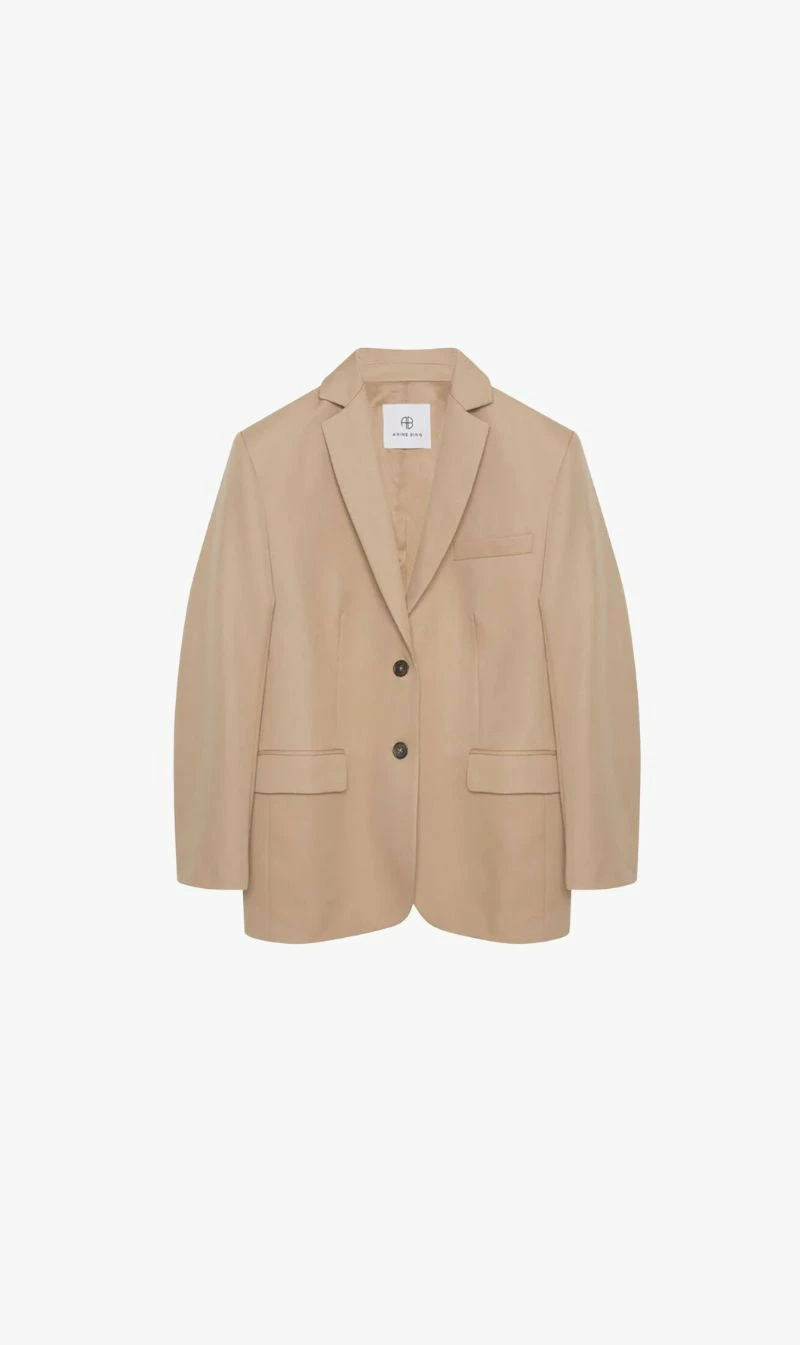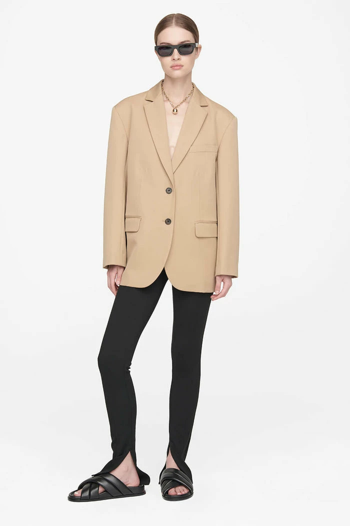 The Quinn Blazer is crafted from a luxurious 100% Italian wool updated in a deep sand colorway. This single-breasted jacket features timeless tailored details like notched lapels, a single welt pocket at the chest, two flap pockets at the hip, and a two-button closure at its center front. The Quinn Blazer is cut for an