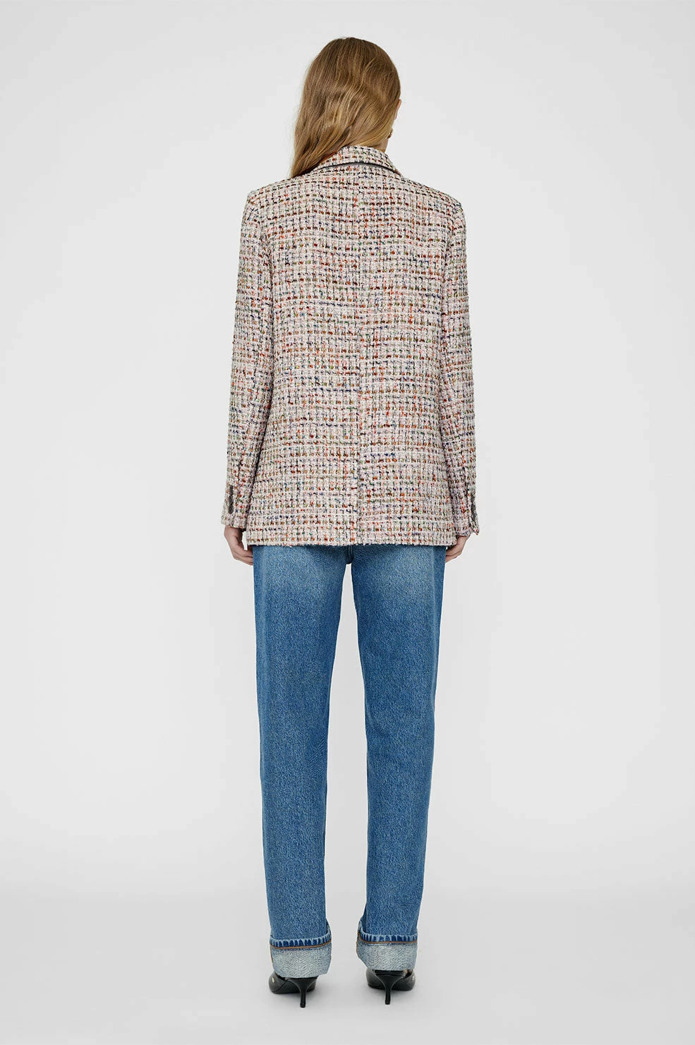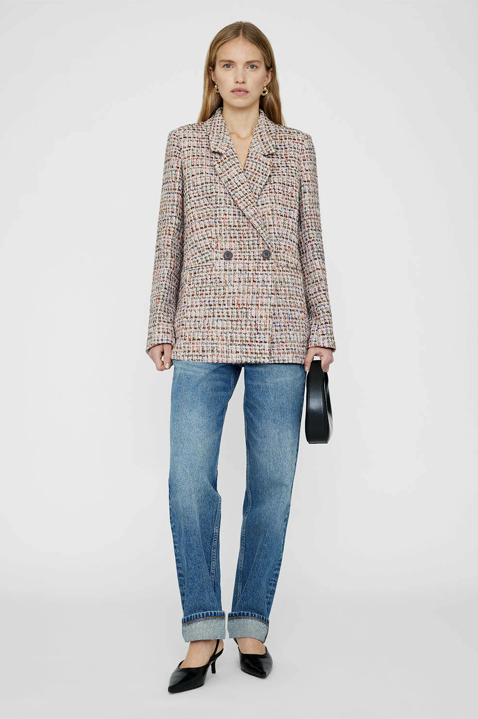 The Diana Blazer by Anine Bing is crafted from a novelty tweed fabrication with a soft, brushed hand in a feminine lavender hue. This menswear-inspired style is fully lined featuring an interior chest pocket, three-button cuffs, and two welt pockets at the front waist. A double-button front closure makes for a clean, c