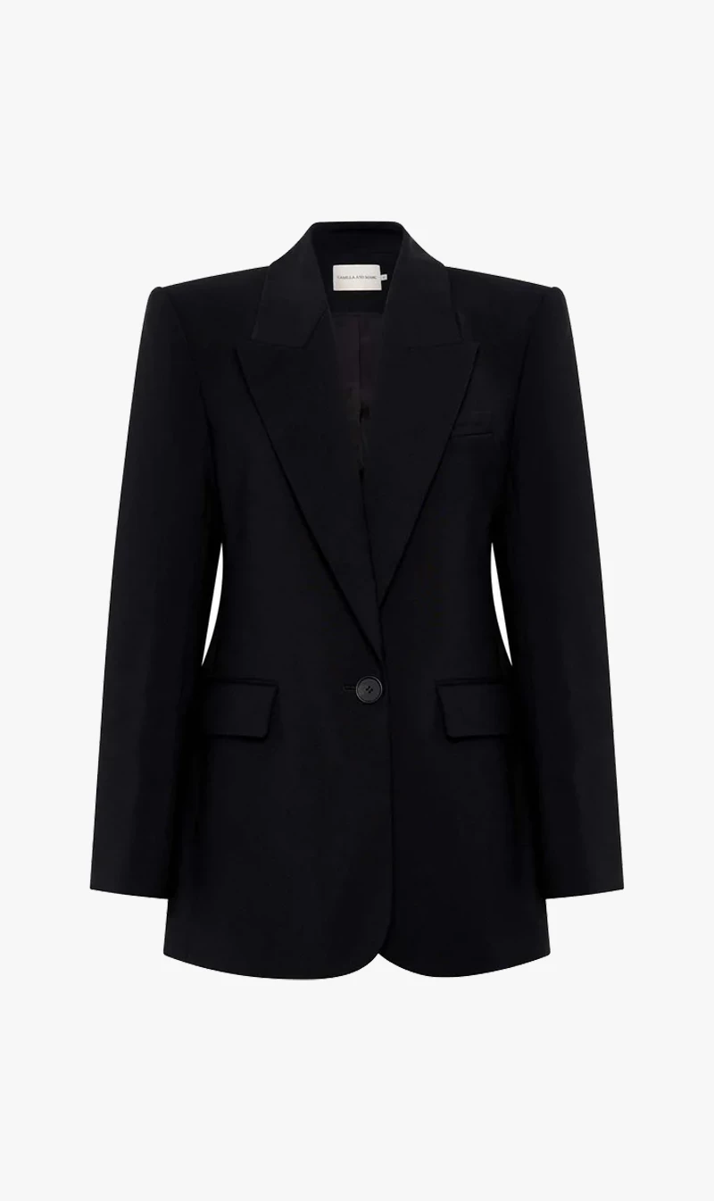 The Camilla and Marc Waverleigh Blazer in Black will be a timeless addition to your wardrobe. Designed from premium wool fabrication, it holds its shape though drapes fluidly. This blazer has a streamlined silhouette with an exaggerated shoulder and wide notched collar. Single breasted blazer Notched Collar Tailored fi