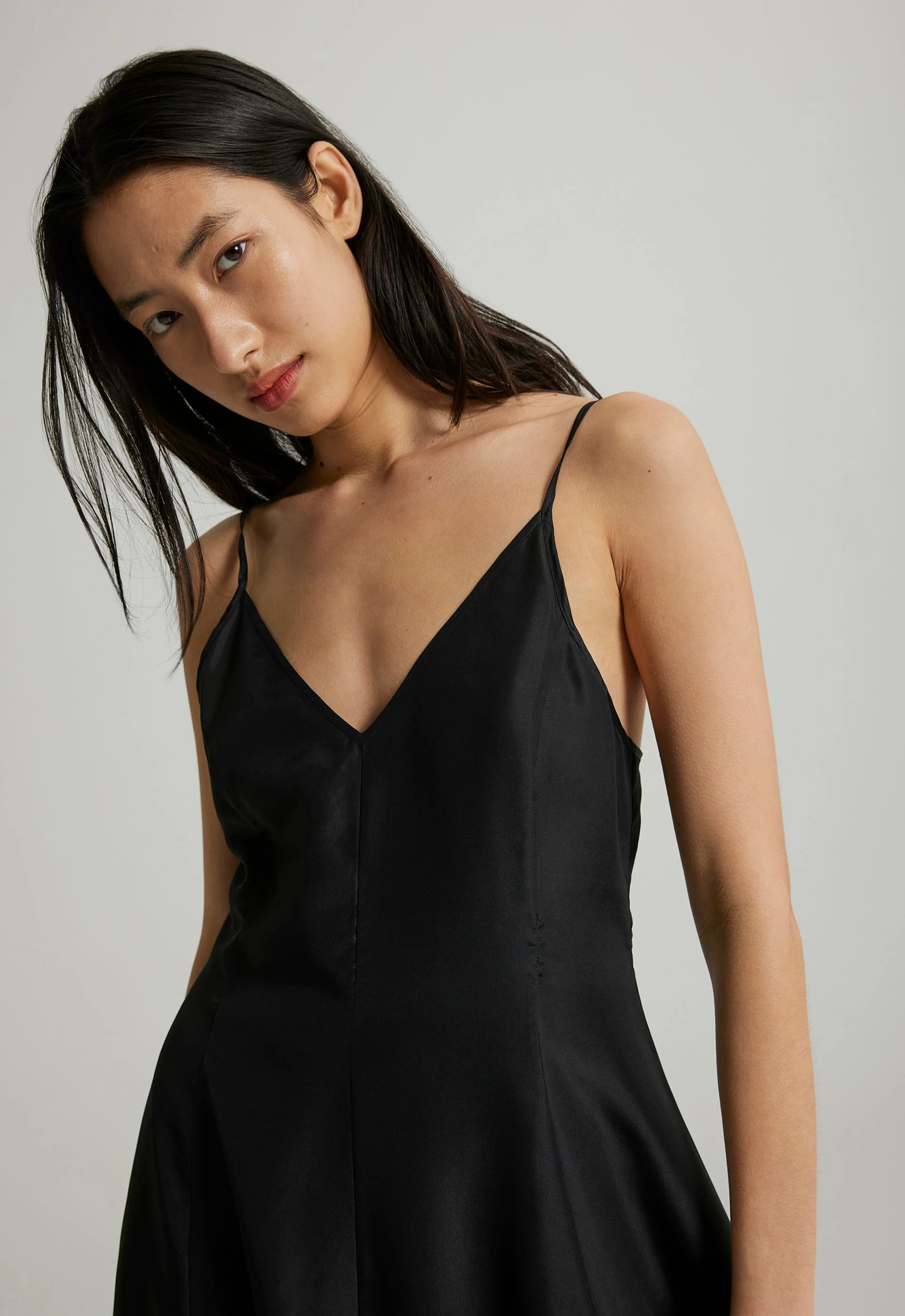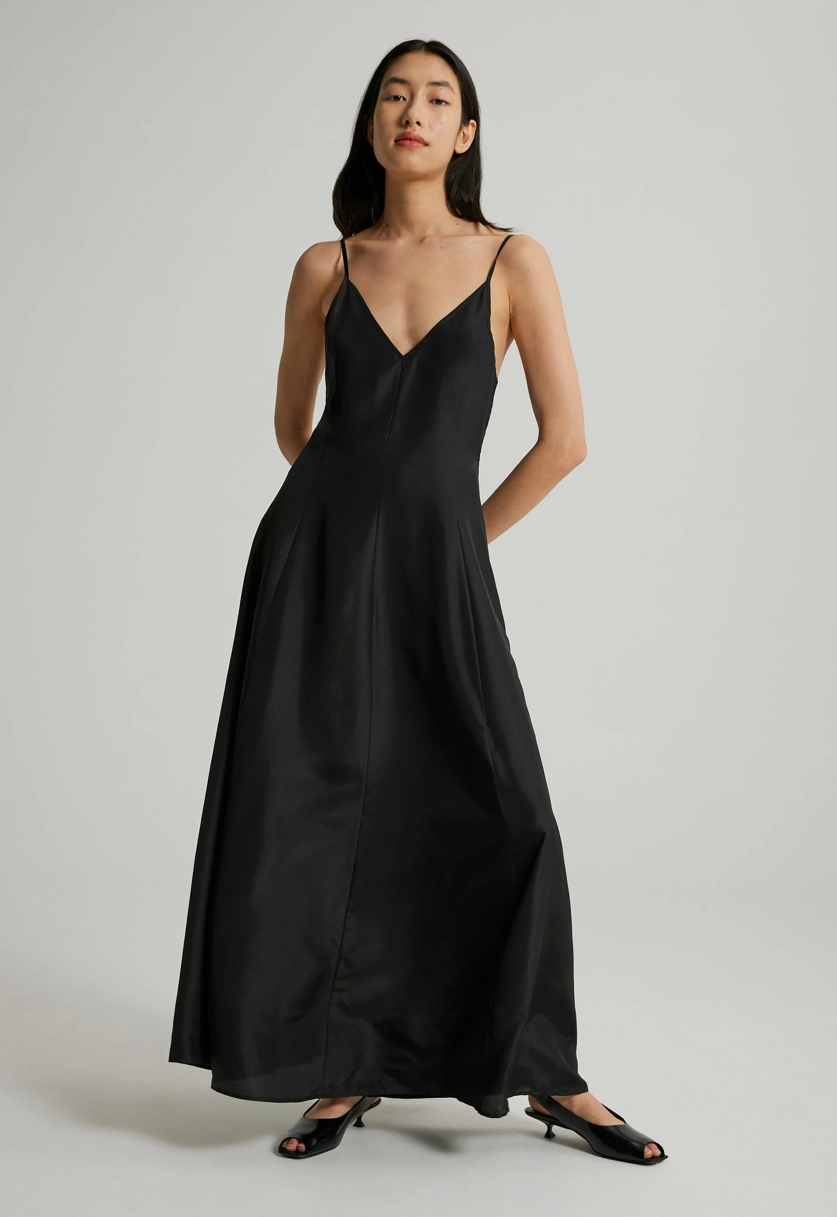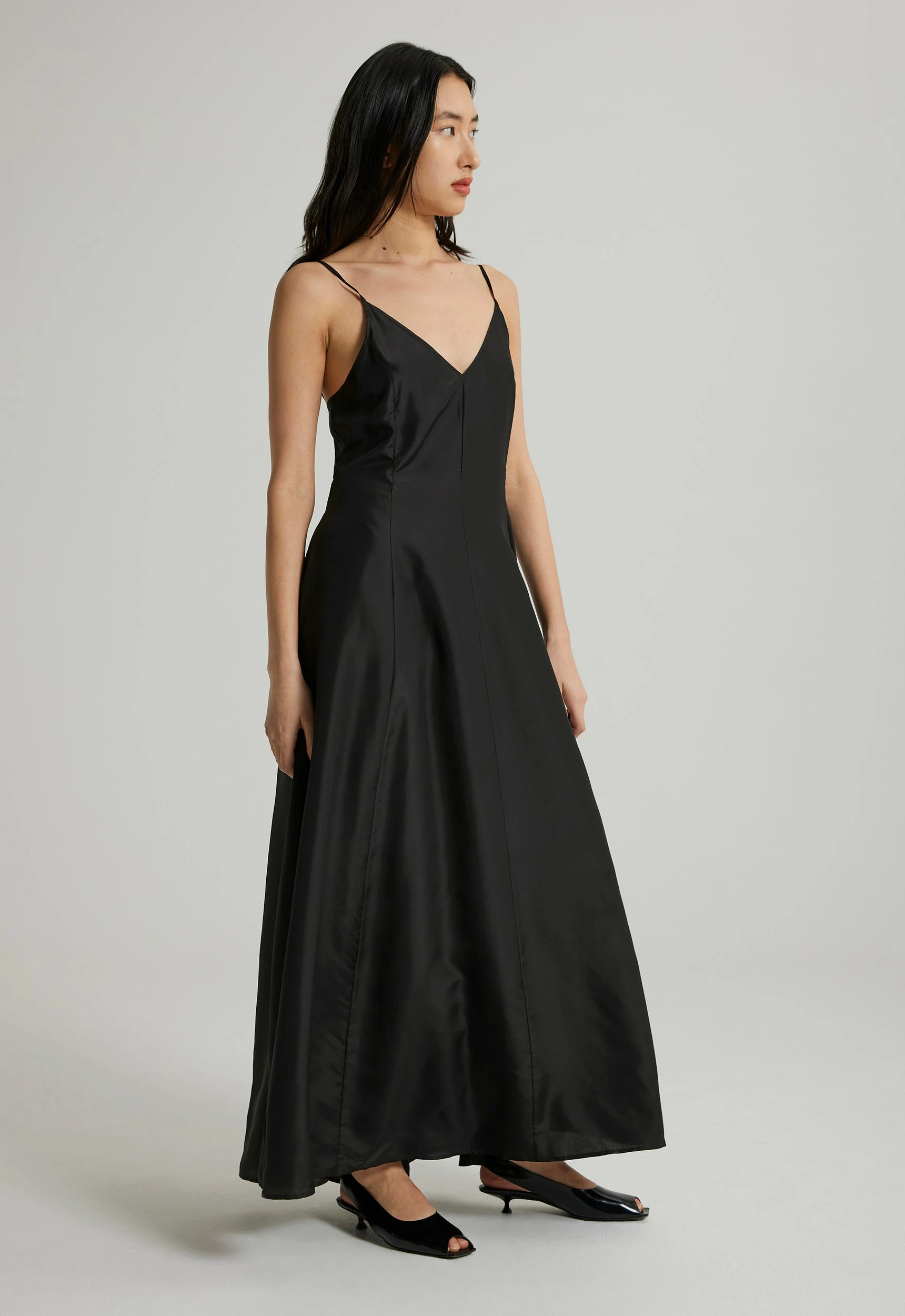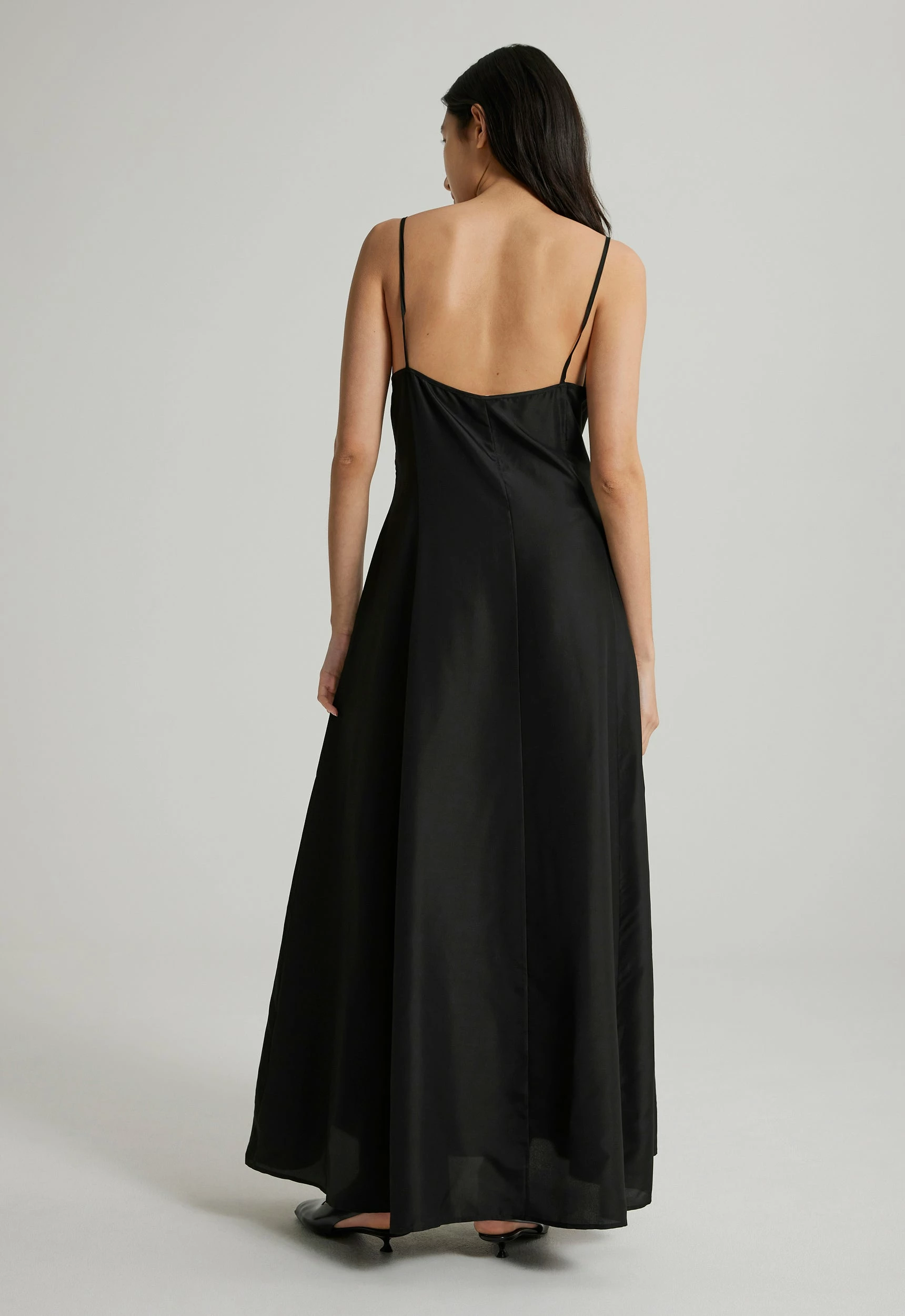 Soft and romantic, the beautiful Jac+Jack Ayre Tress is a strappy silk maxi dress that features a plunging v-neckline and billowing silhouette. Designed to be fitted through the waist before draping softly to the floor, this elegant piece will carry you effortlessly through the warmer months. Flattering V Neckline Fitt