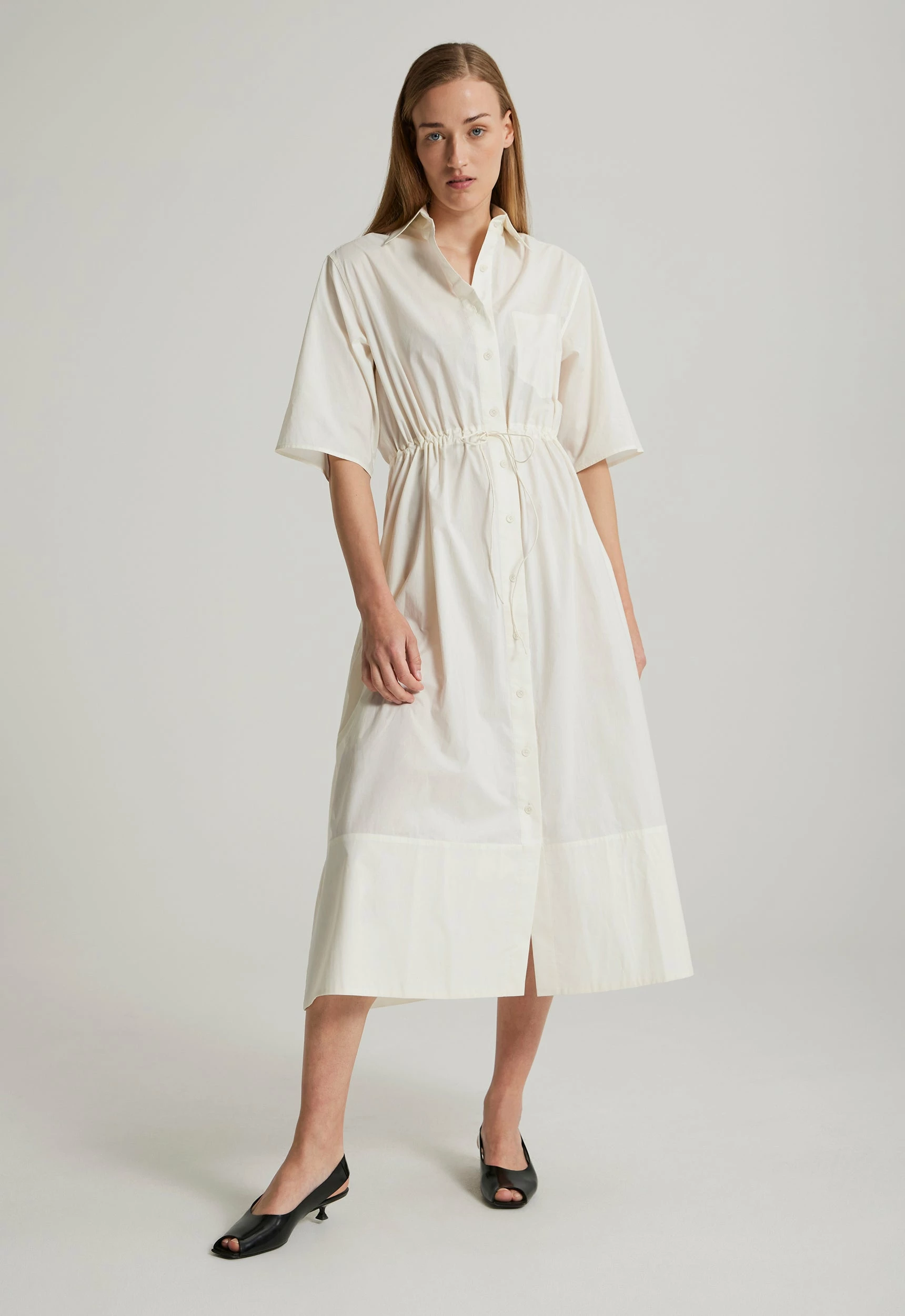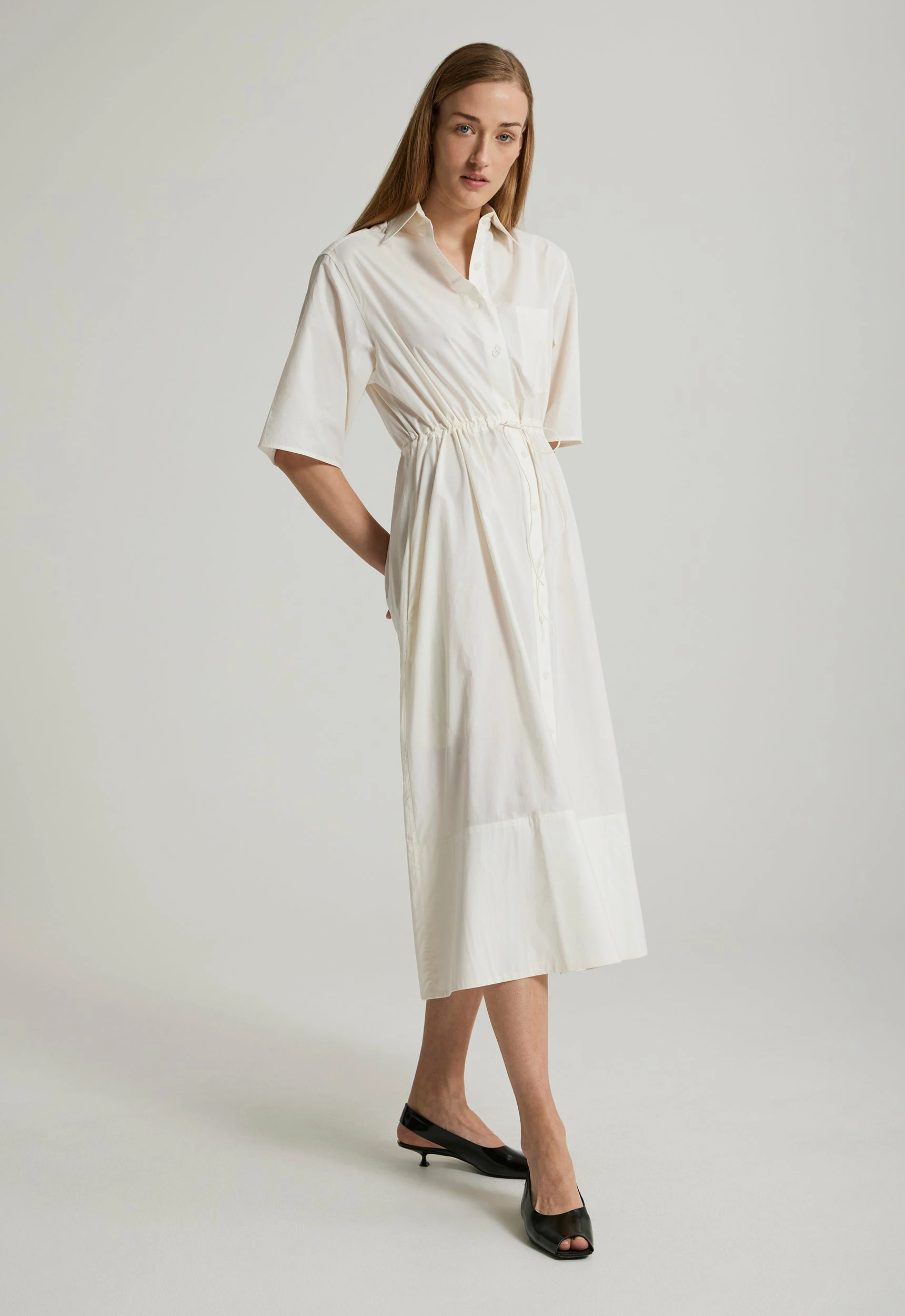 Cool and classic, the Jac+Jack Brookes Dress is a collared shirt dress that features oversized drop sleeves, a drawstring waist and full skirt that falls above the ankle. Add in the side seam pockets and this piece is the ultimate in chic easy dressing. The perfect throw-it-on style, you will find yourself reaching for
