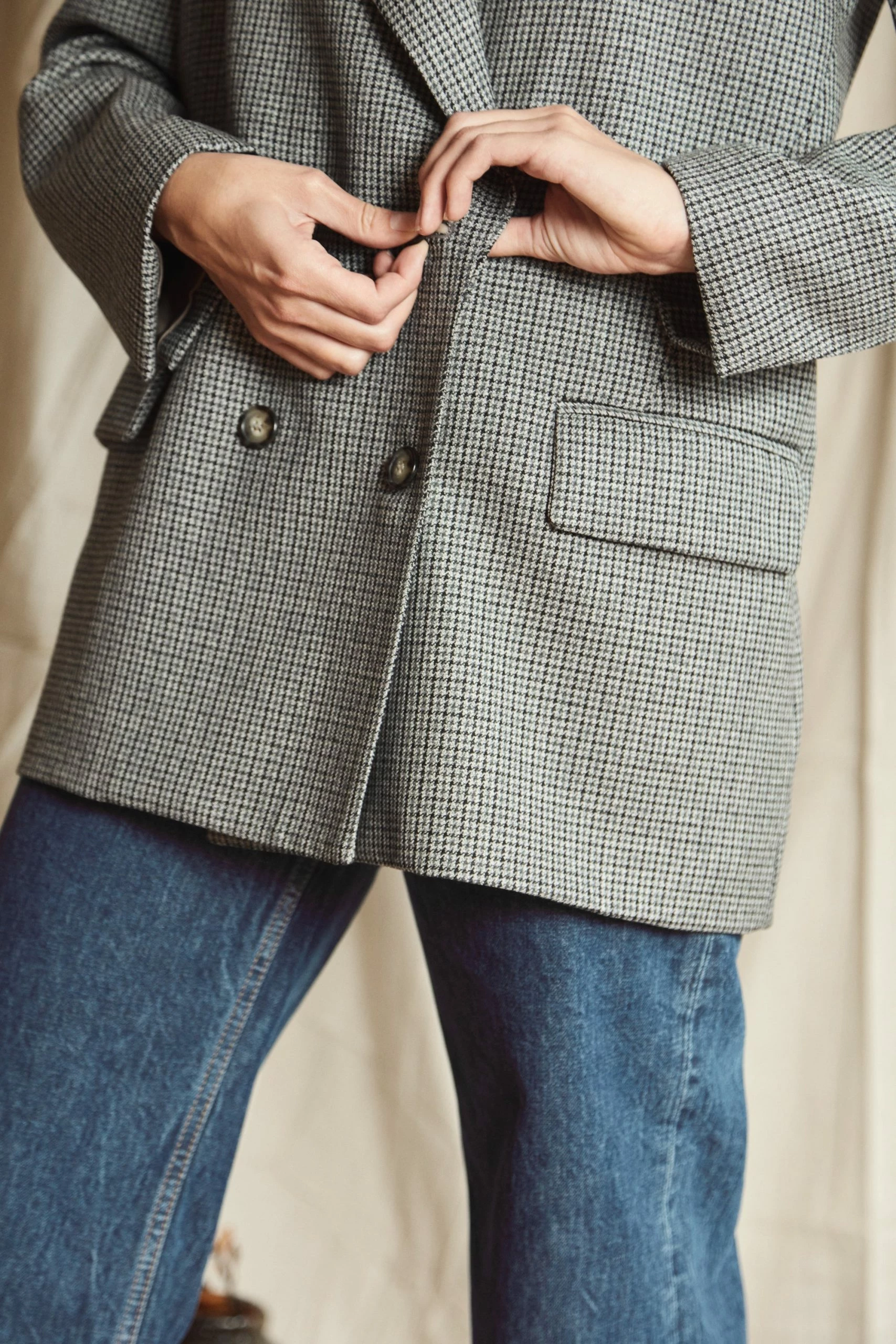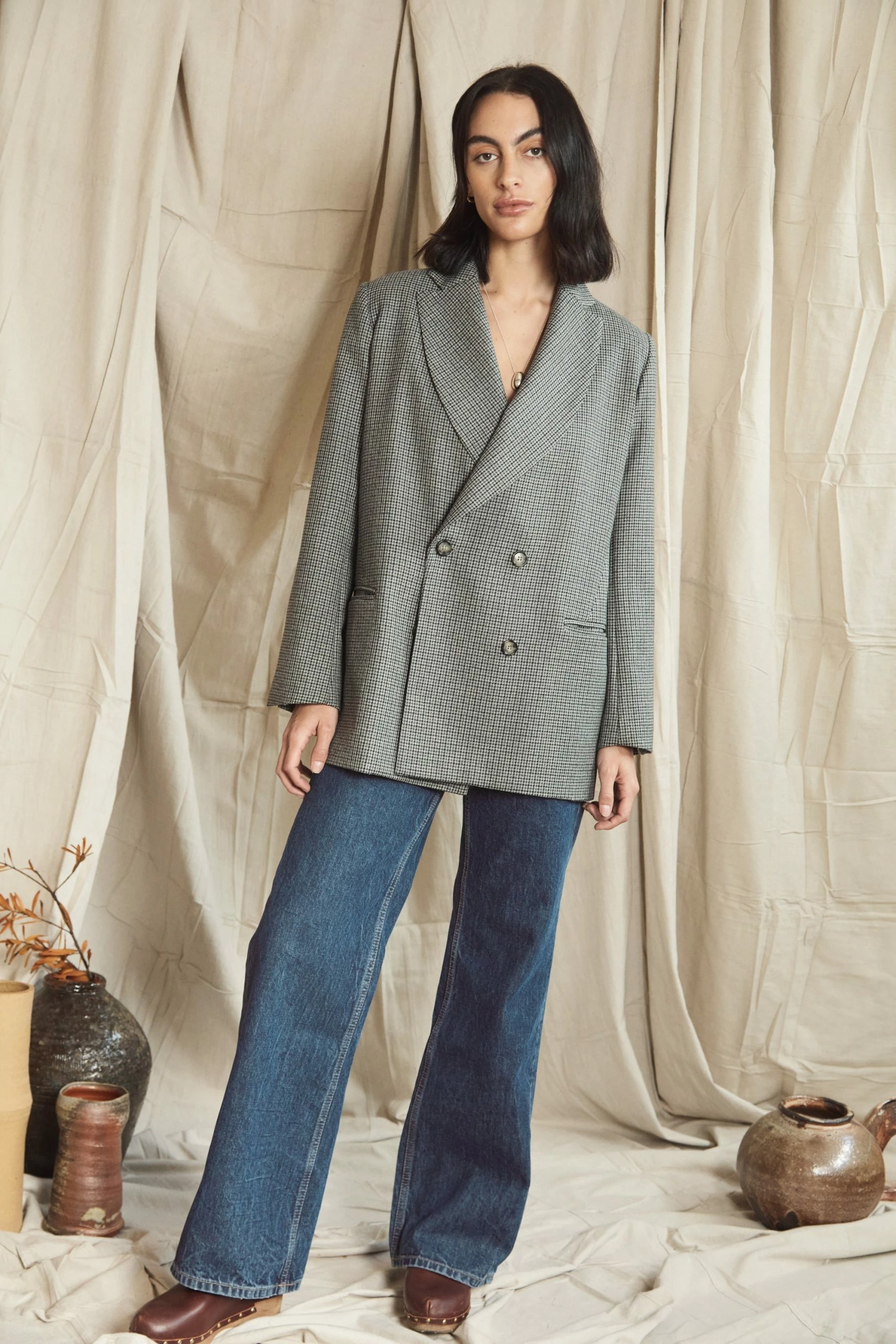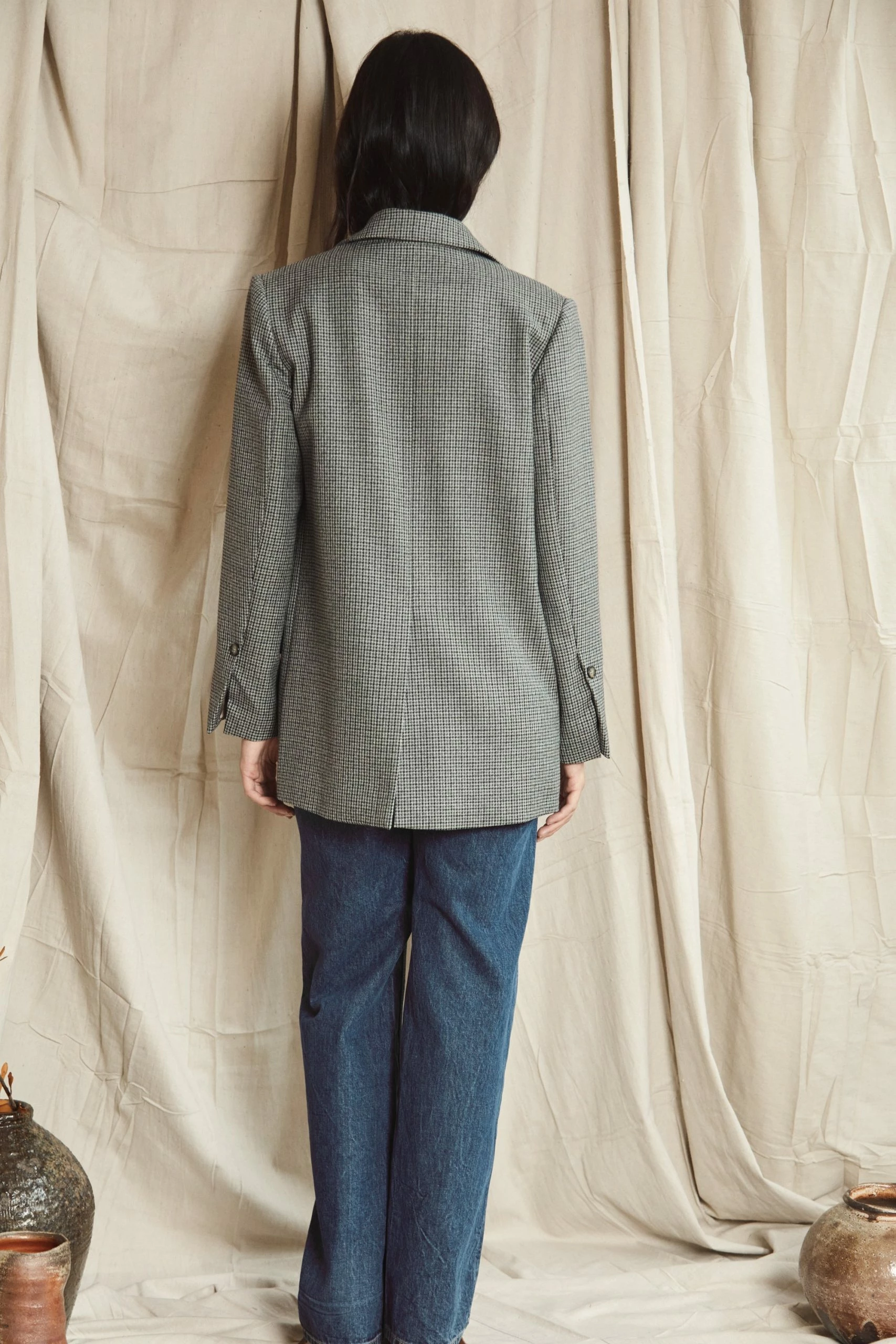 Mahsa bring us their signature Gentleman Blazer, refreshed. Introducing the Gentlewomen Blazer – Mini Houndstooth. Crafted to last and transcend seasonality, this is a jacket made for the woman who prefers a classic masculine cut. With nods to the heroines in French New Wave films, and fine British suiting, the double-