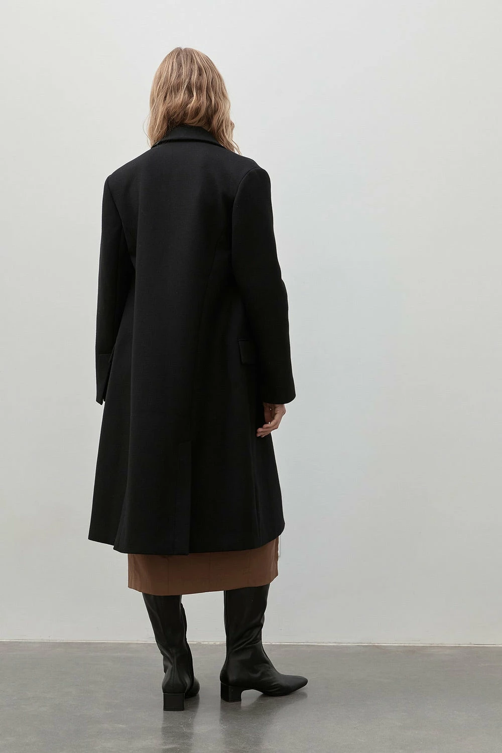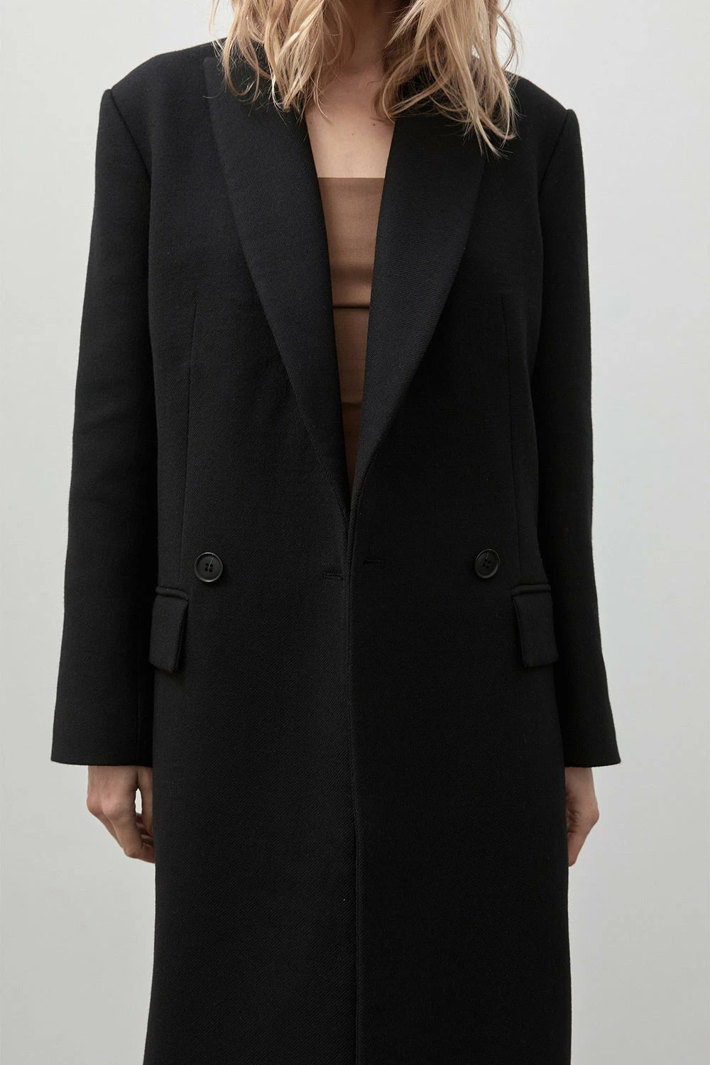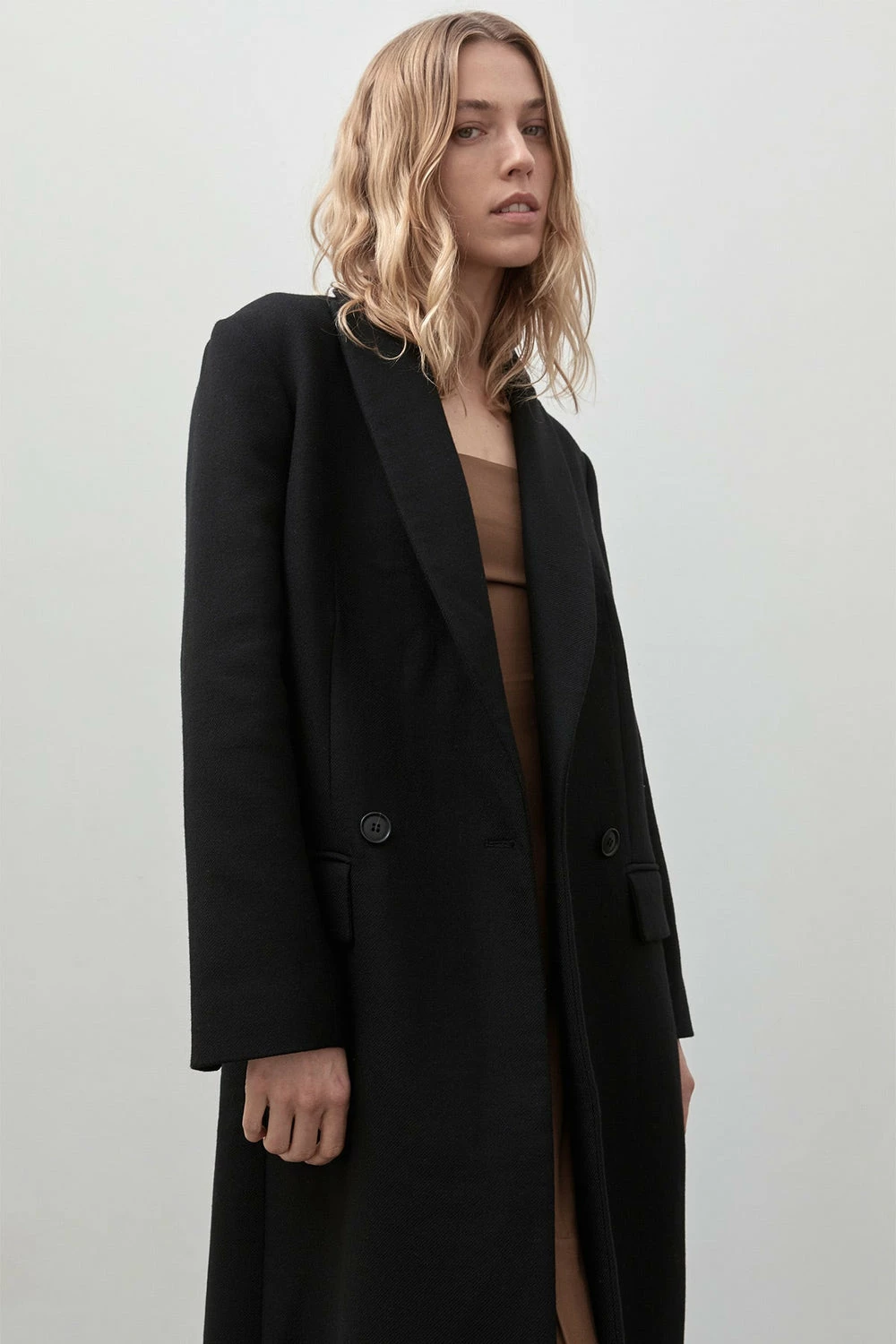 The St. Agni Double Breasted Wool Coat is made from 100% responsibly sourced wool and features double-breasted front pockets, vents in the sleeves and back and lining. Taking cues from masculine tailoring and 90s silhouettes alike, the Double Breasted Wool Coat is a timeless cold-weather staple inspired by the timeless