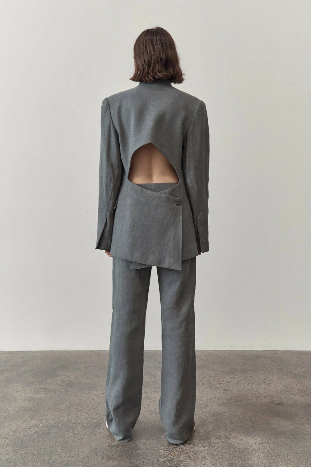 A minimalist blazer elevated with considered detail, the St Agni Linen Cut Out Blazer is constructed from luxurious mid-weight linen, with TENCEL™ Lyocell lining. Featuring an exposed cut-out at the lower back with a collarless neckline with single button fastening, this piece is perfect to wear with the Linen Mid Rise