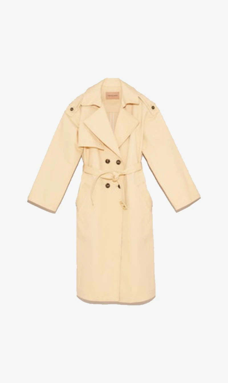 The Yves Salomon Coat Thick Cotton in Desert Dust. Please Note – please refer to the third image for the correct colour representation. 100% cotton Lining :100% Silk